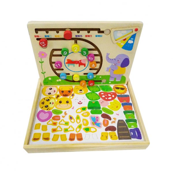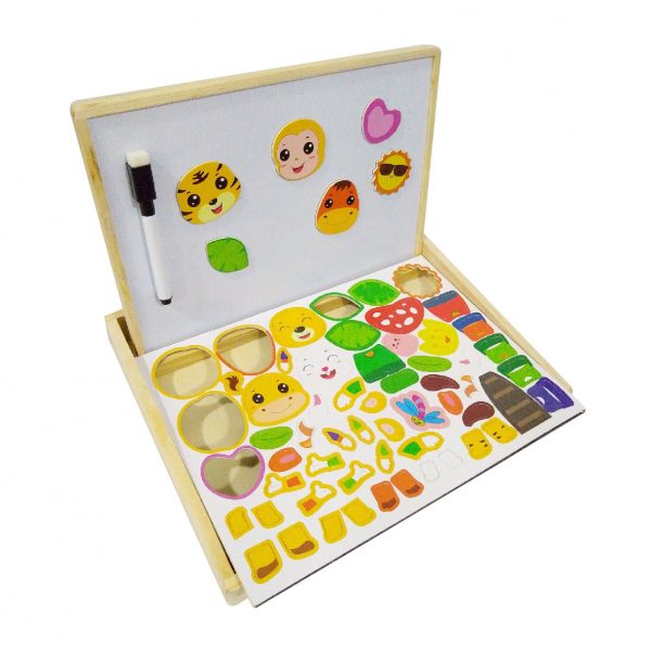 Children's imagination and creativity have no limits. Completing the figure of their favorite characters will advance their logical thinking and language, increasing their vocabulary. A box full of surprises for them to relate and narrate their best ideas will undoubtedly be a nice gift for those children who want to imagine their stories. The color and design of this game encourages children to create their magical stories. Designed entirely in wood and non-toxic paints.