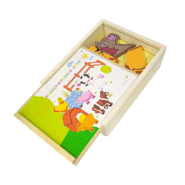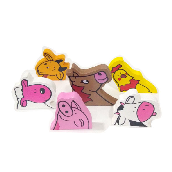Un juego diseñado totalmente en madera. Ideal para incentivar el aprendizaje y vocabulario de los niños al jugar con los diferentes animales como personajes en sus historias. La creatividad y facilidad de expresión son las protagonistas en este juego.
