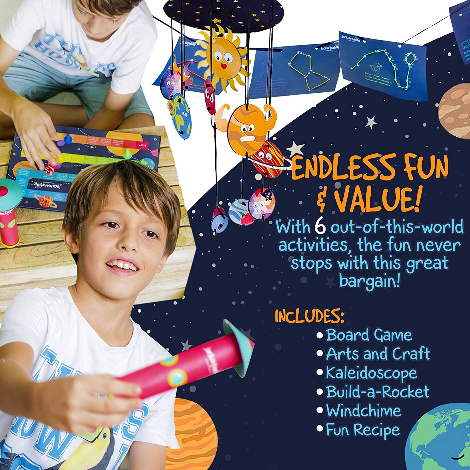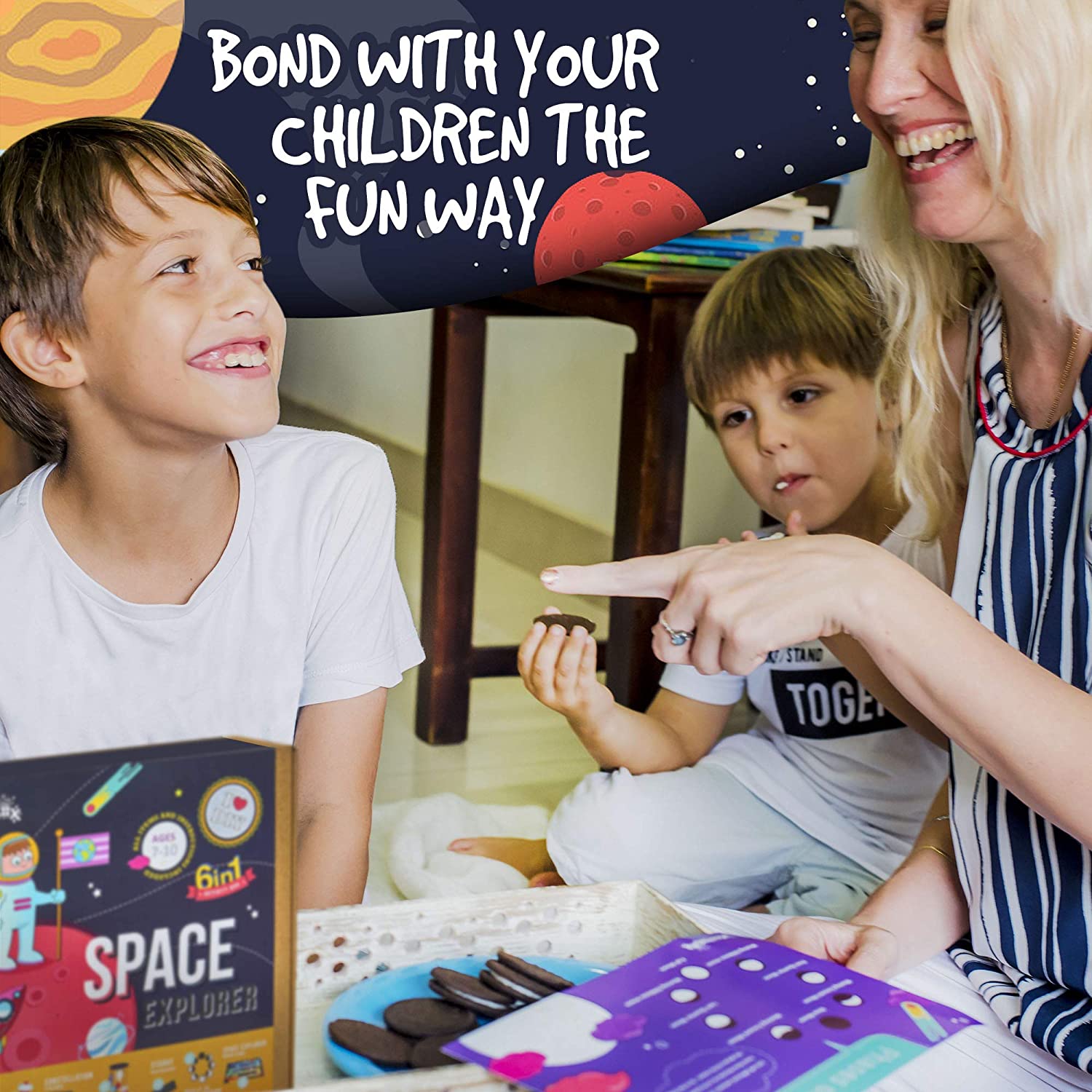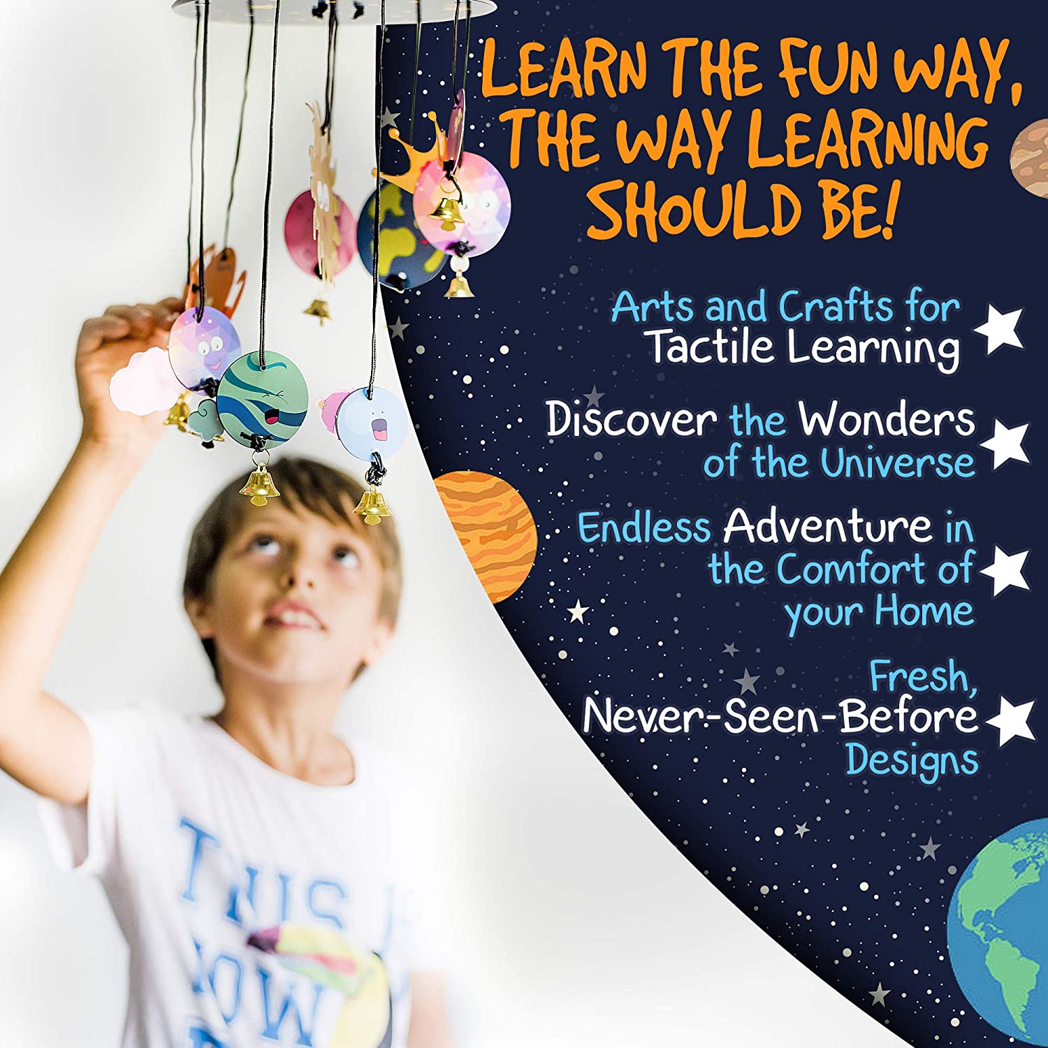 Lo más divertido para los niños es cuestionarse y crear proyectos donde encuentren respuestas a sus inquietudes. Este juego diseñado especialmente para esas personitas inquietas que aprenden los nombres de los planetas pero sin duda quieren descubrir el porque y el para que del aprendizaje de temas como la gravedad, la luna, constelaciones, las estrellas y los cometas. Un sistema solar que expone a los niños a preguntarse el tamaño de los planetas, la distancia que hay entre ellos, el porque de los anillos de Saturno ó el privilegio de vivir en el planeta tierra y ubicarse con lo que se encuentra a su alrededor. Podremos educar a los niños en un medio donde al mirar hacia arriba admiren el misterio de ver en el firmamento un avión, el lanzamiento de un cohete. Respeten el conocimiento y sabiduría de grandes científicos que reten sus sueños y su imaginación hacia un futuro prometedor.