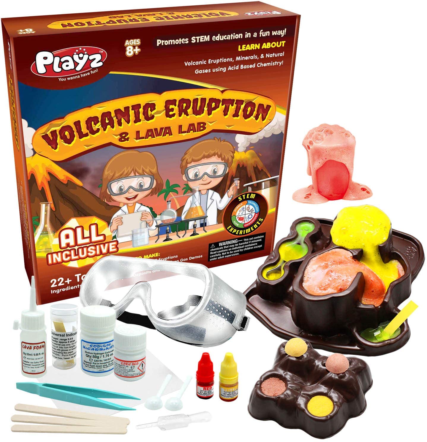 • EXCITING WAY TO LEARN: Inspiring young children to learn has never been more fun with this Playz STEM science kit that allows kids to learn about volcanoes eruptions, minerals, & natural gases using acid based chemistry that will blow their minds away! Perfect fun & hands on educational christmas or birthday gift for boys, girls, kids, & teens Ages 8, 9, 10, 11, 12+ Years Old
