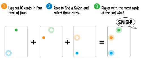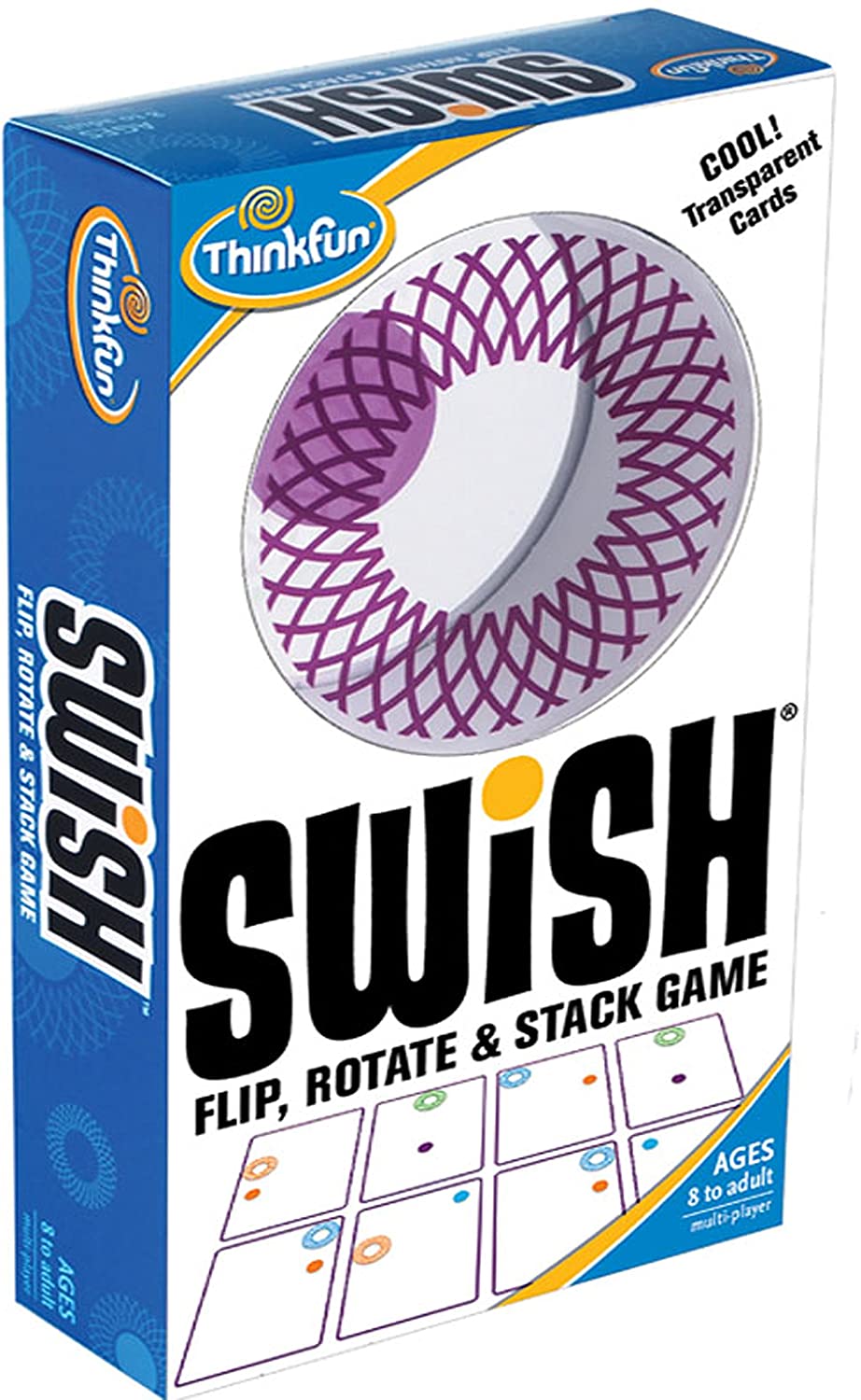 - Swish es un juego que es galardonado en el mundo por ser muy divertido. La marca ThinkFun es reconocida como una de las líderes en desarrollar juegos didácticos, lógicos y creativos. Este divertido juego desarrolla el pensamiento crítico como el razonamiento lógico y persepción visual. Son cartas que divierten e invitan a pensar y a jugar con agilidad mental. El material a prueba de agua, hace que muchos niños jueguen en lugares exteriores como la playa y piscinas.